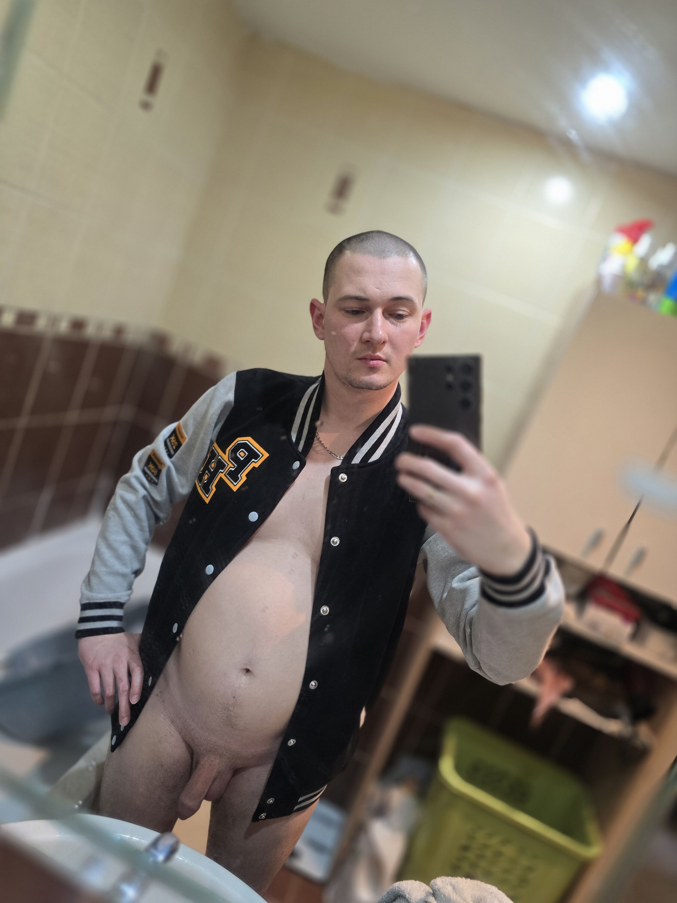 Cute young boy masturbates his big cock with fake pussy